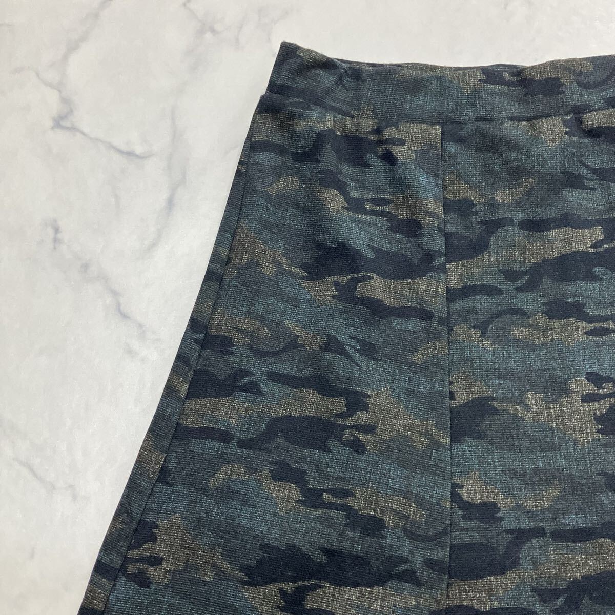 - 美品 ReiTan 迷彩 カモフラ ウエストゴム 裏地付き フレア ひざ丈 スカート グリーン系 ブラック カーキ