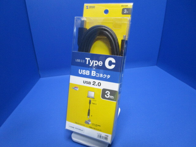 - サンワサプライ USB2.0 TypeC - Bケーブル KU-CB30 1本 USB Type-C - BのUSB2.0ケーブル。USB認証取得品。ブラック・3m