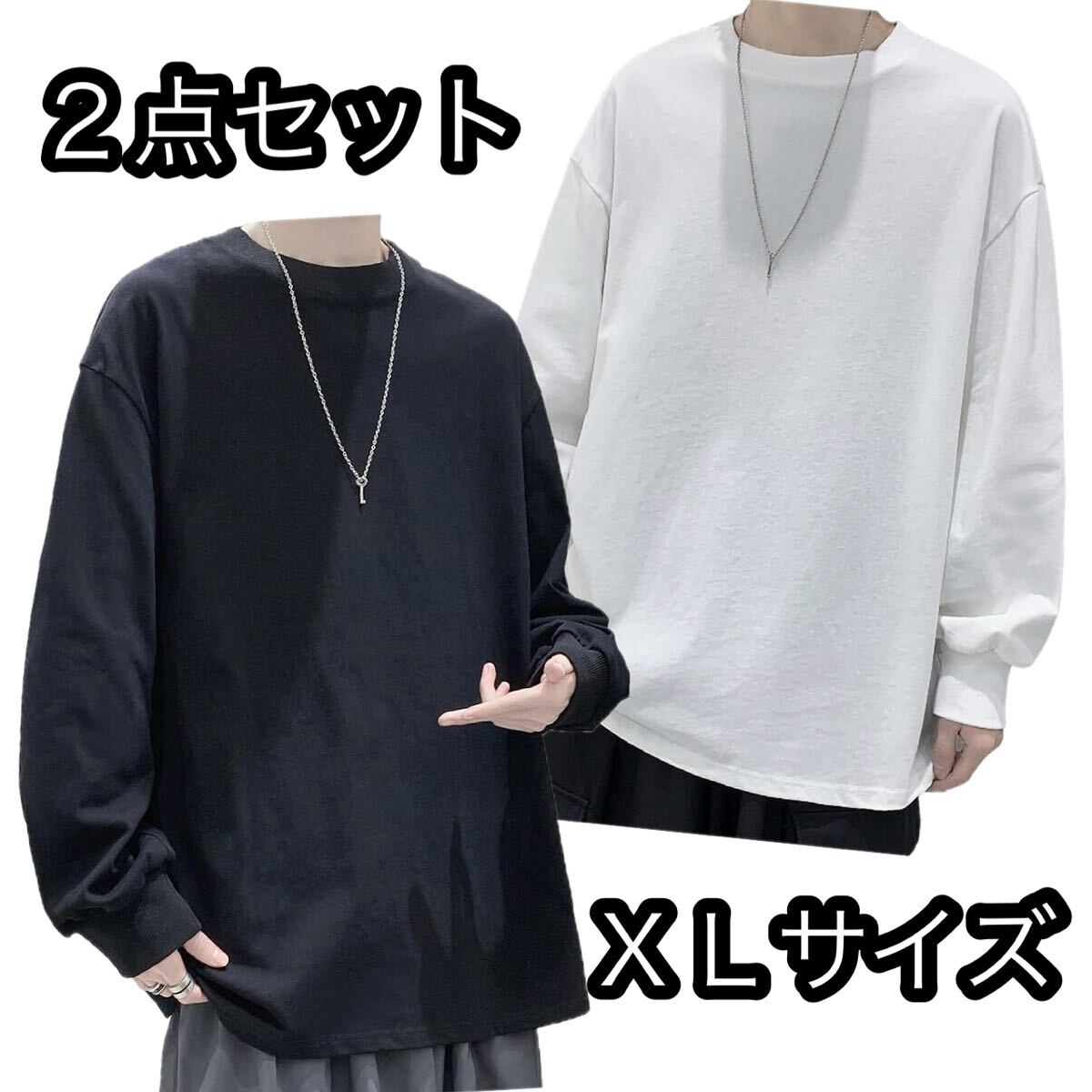 - 白・黒セット販売!ロンティー メンズ 長袖 tシャツ 無地 トップス 綿100 カットソー XL