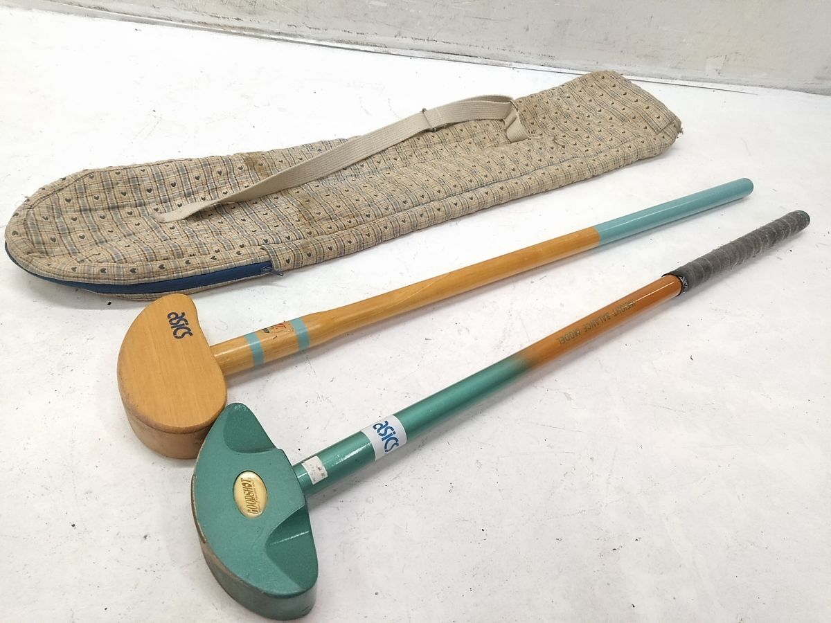 > ◇2本セット asics アシックス GOOD SHOT グランドゴルフ クラブ 木製 全長約83.3cm 約83.6cm 0918-1 @140◇