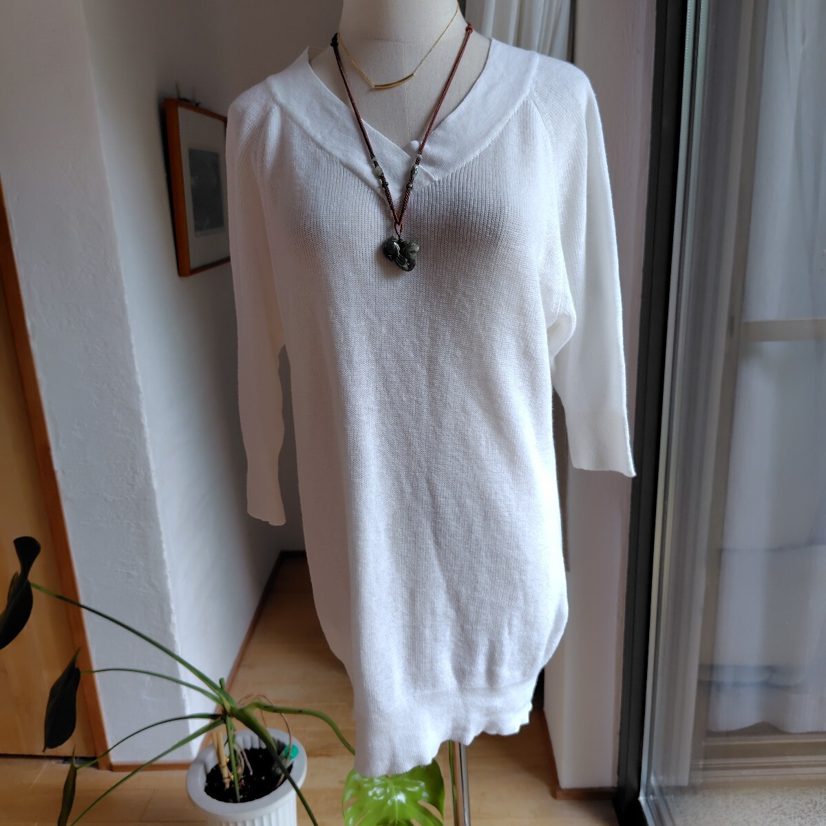 - CLACIER コットン カシュクール デザイン 七分袖チュニック 白 ラグラン袖 M 美品☆