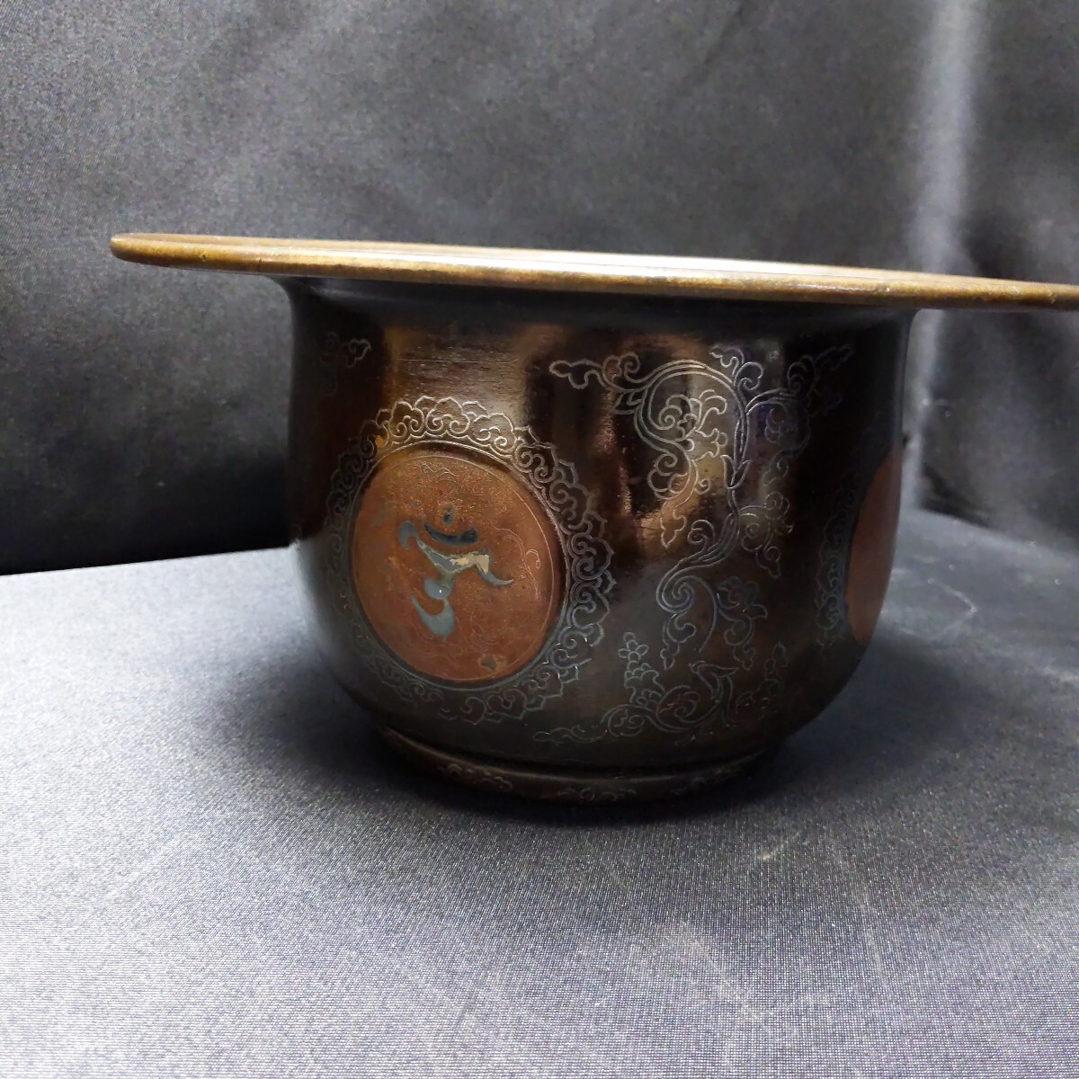 - 銅製 線香立て 花器 アンティーク 金属工芸 上部25.5cm 内径17cm 高さ13cm 807