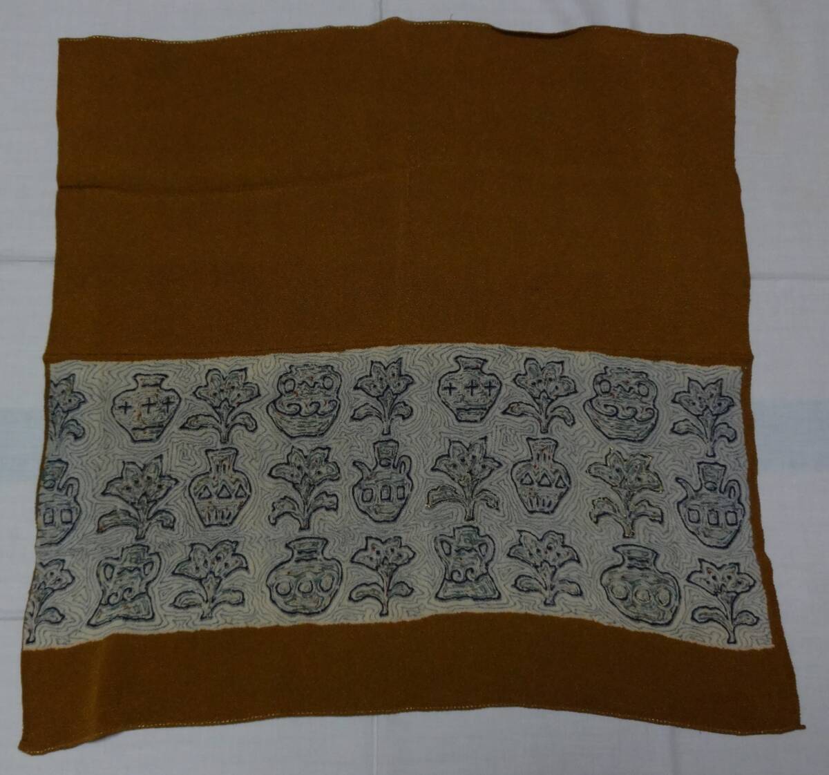 - 茶色地に百合と花瓶模様が描かれた縮緬風呂敷