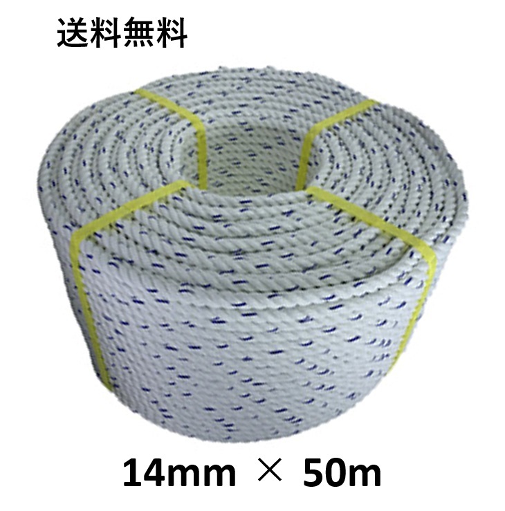 - 送料無料 スパンエステルロープ エステルスパンロープ 14mm×50m 綱引きロープ 三つ打ち ロープ 線入