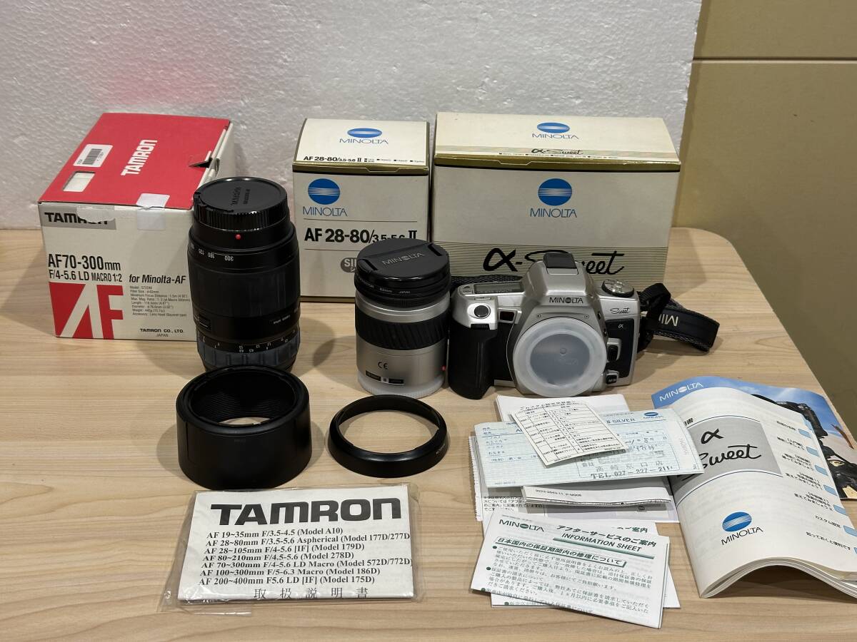 > A145-7_ 動作未確認 フィルムAFカメラ MINOLTA αSweet ミノルタアルファスイート/AF28-30 3.5-5.6Ⅱ、Tamron AF70-300 4-5.6 MACRO1:2