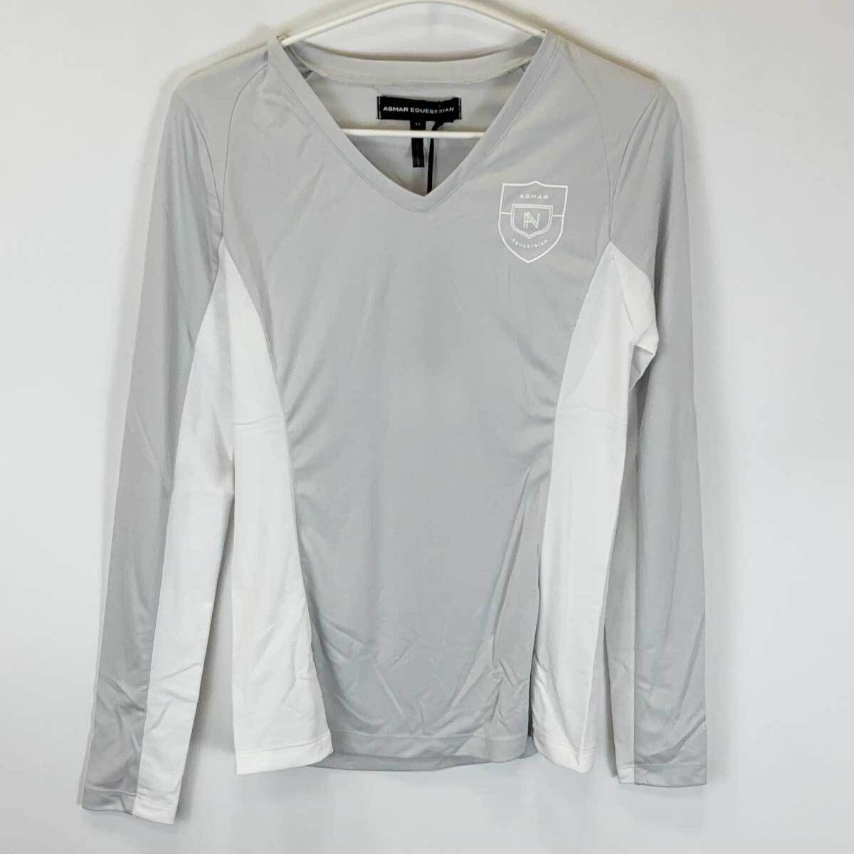 - 【中古・未使用品】NOEL ASMAR ノエルアスマール ストレッチ S/S 長袖 ライディング シャツ ロゴ Tシャツ XS ライトグレー レディース 乗馬