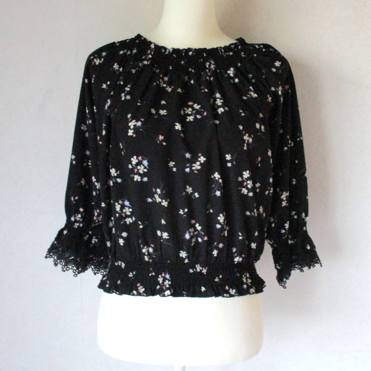 - ☆使用品☆COLZA コルザ☆ 小花柄オフショルブラウス size 160/84A 黒系【圧縮発送】