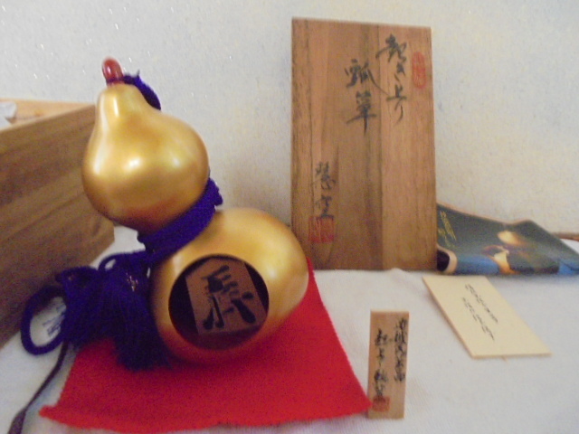 - 石川県民芸品/起き上り瓢箪・瓢箪の置物・金塗瓢箪/ひょうたん置物・飾り/露康庵 慧空 作/共箱付美品-長期保管品