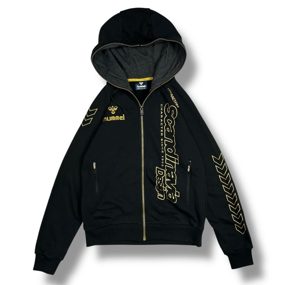 - (TK0920)【美品】 Hummel ヒュンメル フルジップ ジップアップ パーカー フーディー ブラック ゴールド ロゴプリント スポーツ 定番 S