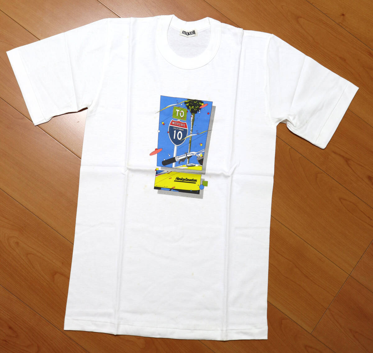 - 新品未使用★ maxell カセット・テープのプレゼントTシャツ★ 鈴木英人/Eizin Suzuki ★ ハーレー・ダビッドソン★1980年代物★綿100%