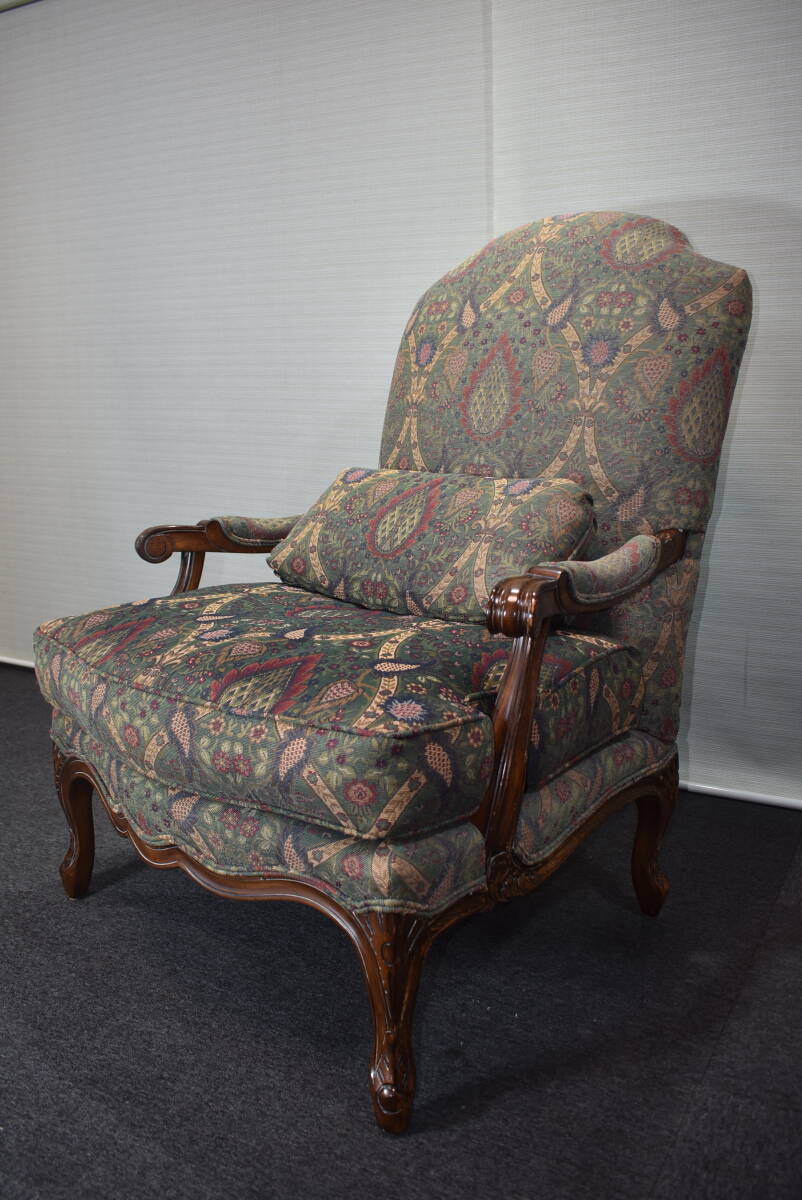 > ■Century Furniture USA Hickory.N.C.■高級/大型/ラウンジチェア■シングルソファ■猫脚/彫刻/平織花柄/マホガニー■高さ109cm■