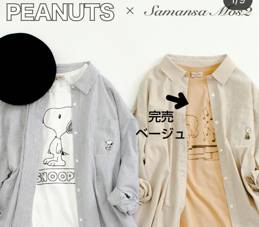 > SM2サマンサモスモス 【PEANUTS×Samansa Mos2】プリントTシャツ新品ベージュ 完売