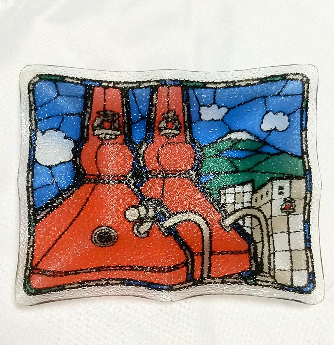 - ガラス工芸 皿 小物トレイ 波型プレート アンティーク オブジェ コレクション