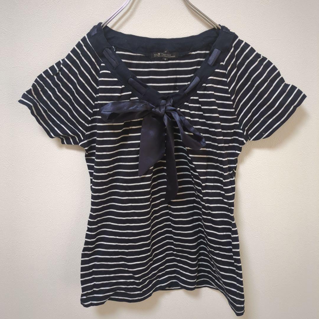- ニジュウサンク(38)ボーダーTシャツ*ボウタイ*綿100%*オンワード樫山*