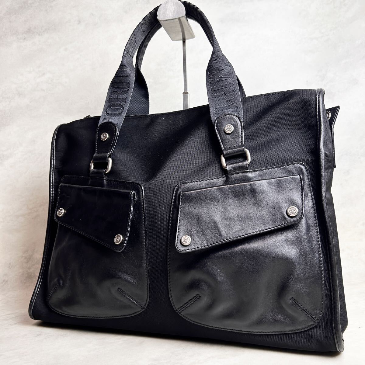 - 【美品】EMPORIO ARMANI アルマーニ 本革 レザー ナイロン メンズ ビジネスバッグ ブリーフケース ブラック A4収納可