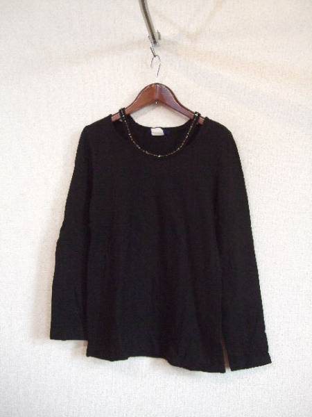 - 襟ビーズ付き黒長袖カットソー(USED)41115