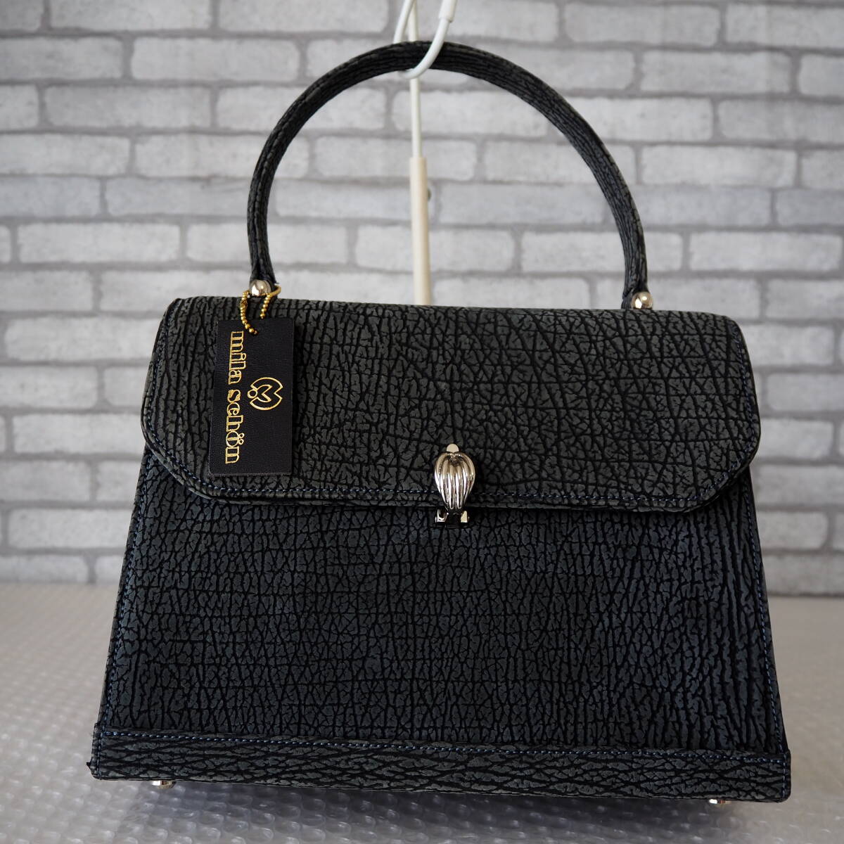 - *美品*mila schon/ミラショーン*シャーク型押し*レザー*ハンドバッグ*グレー*