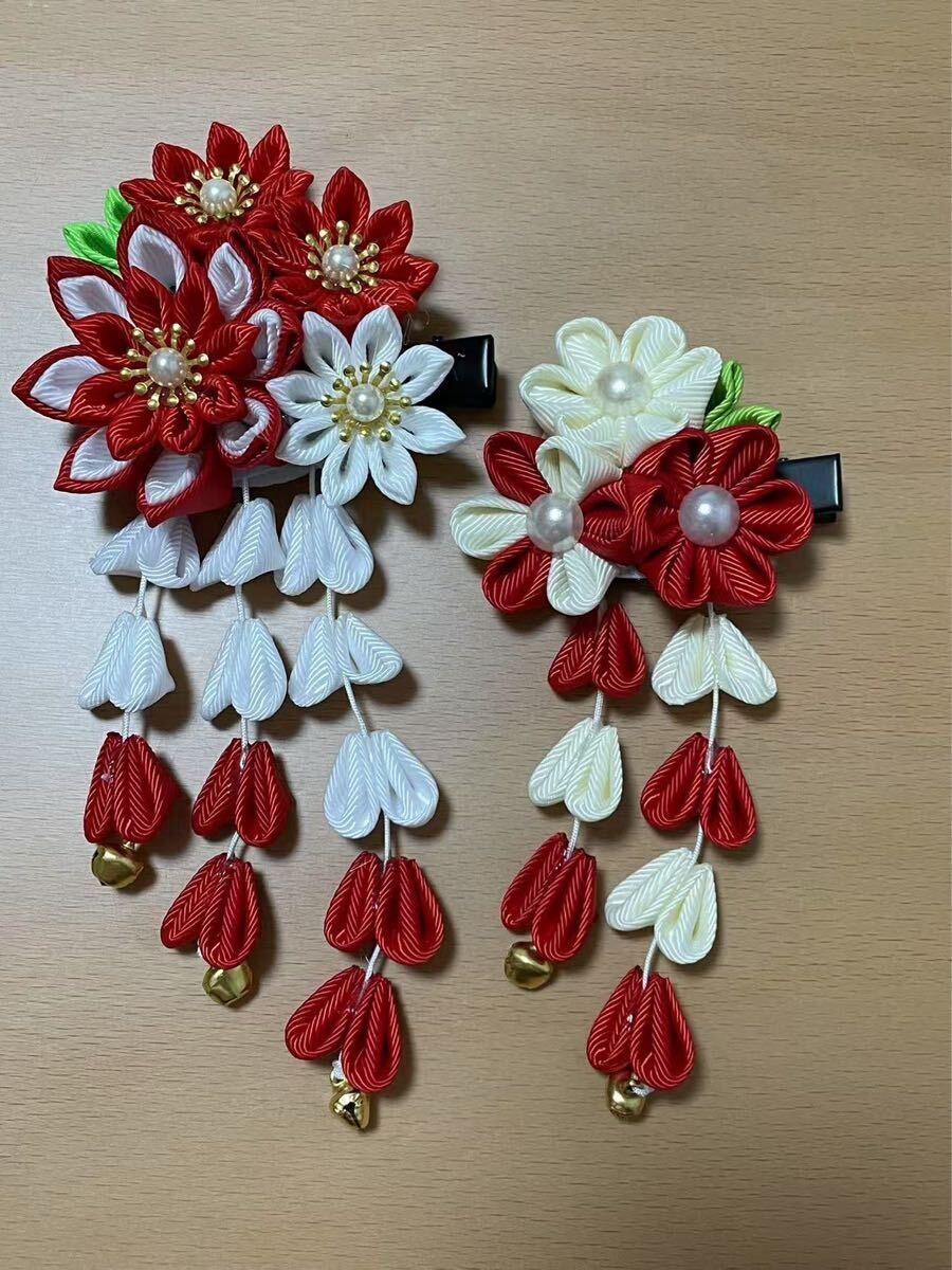 - つまみ細工髪飾り つまみ細工 卒業式袴 成人式 謝恩会 和装髪飾り 七五三 赤セット