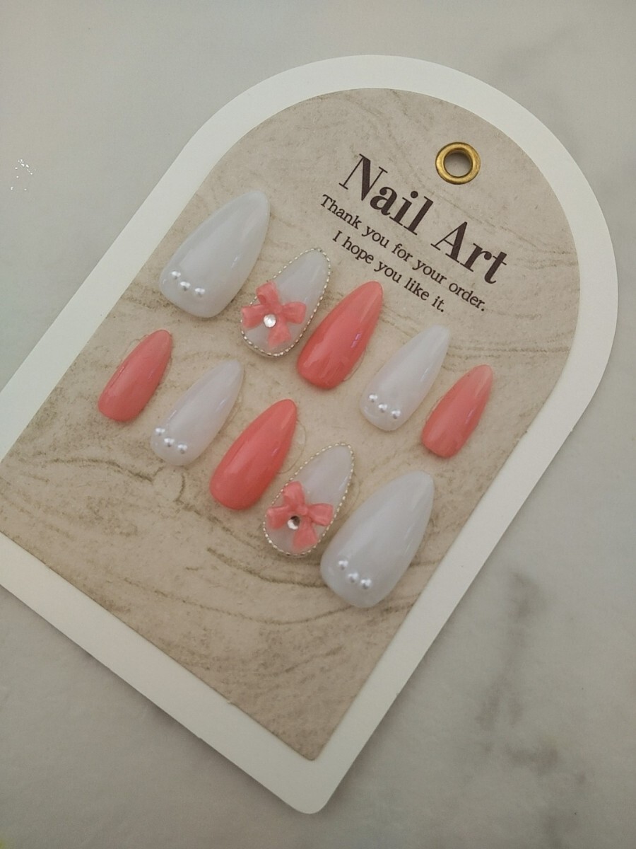 > ホワイトスノーリボン #ネイルチップ#ネイルチップ#ガーリー #スナ系 #韓国#マグネット#ワンホン#キラキラ