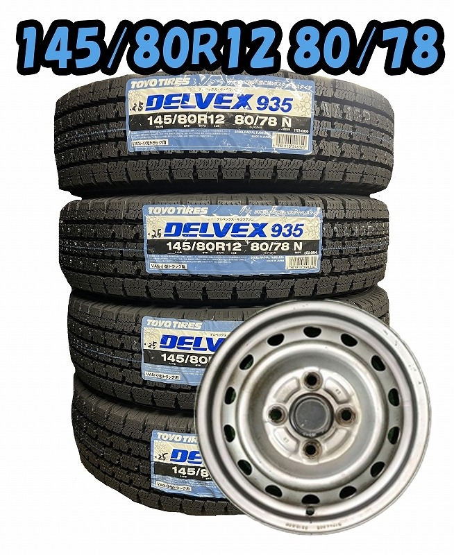- 2025年製 145/80R12 80/78N TOYO DELVEX 935 新品 スタッドレスタイヤ/中古鉄ホイールセット【組み付けバランス無料】