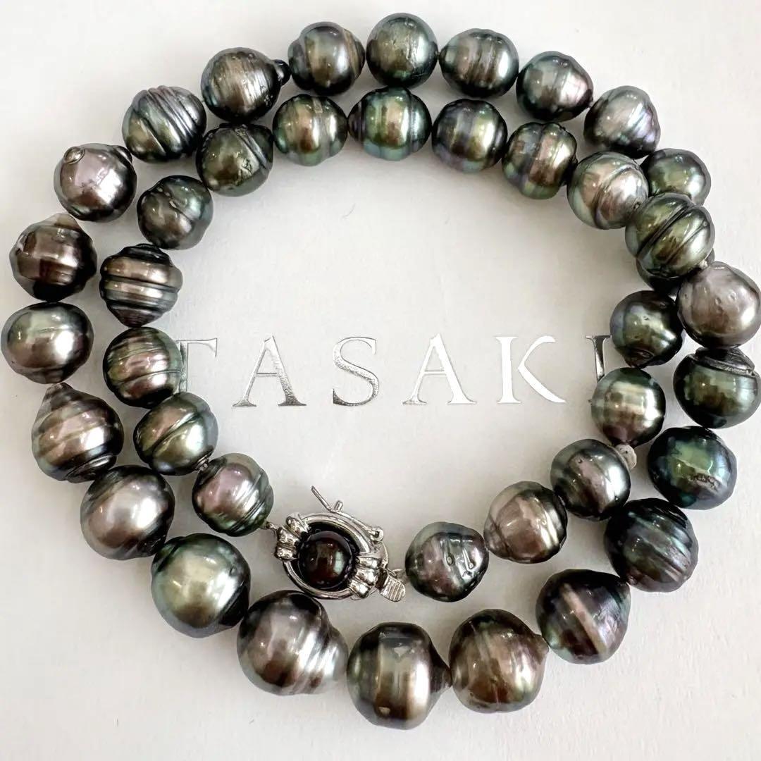 - 照り艶強★TASAKI タサキ 田崎真珠★K14WG黒蝶真珠ネックレス 南洋パール バロック ピーコックカラー 9.1-10.8mm タヒチ