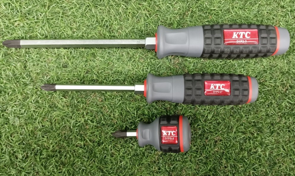 - 中古品 KTC 京都機械工具 樹脂柄ドライバ クロス貫通タイプ D1P2-3、D1P2-3 + 樹脂柄スタッビドライバ クロス D1PS-2 計3本セット