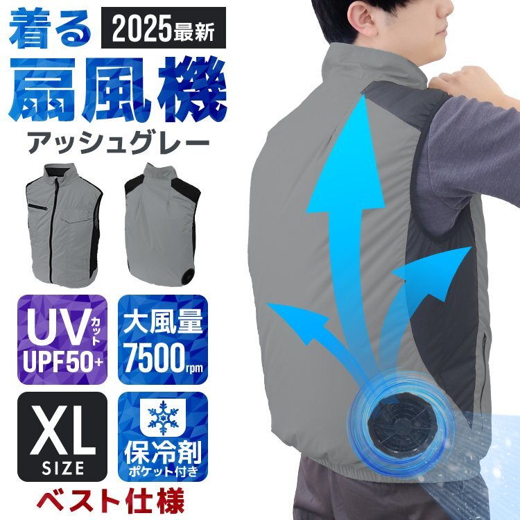 - 【ベスト仕様/XL】ファン付 空調ウェア 洗える クール 作業ウェア 風量3段階 3D立体風循環 作業服 熱中症対策 男女兼用 [アッシュグレー]