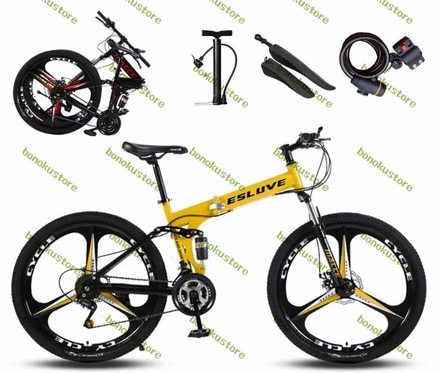 - 折りたたみ マウンテンバイク 自転車 21段変速 26インチ 折りたたみ自転車 後サスペンション 前後ディスクブレーキ 前後フェンダー