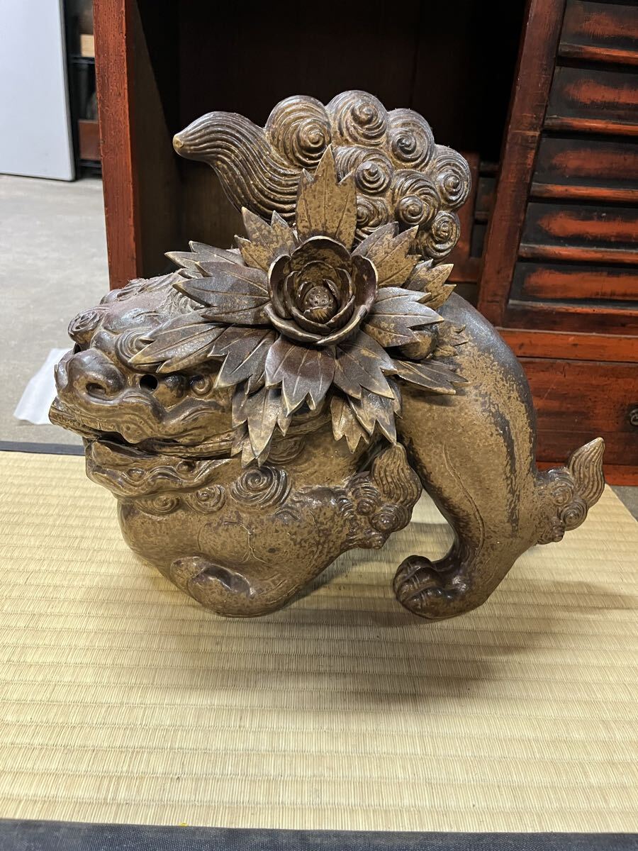 - 備前焼 大サイズ 名人 木南知加選 牡丹 獅子 牡丹獅子 置物 魔除け 細工物