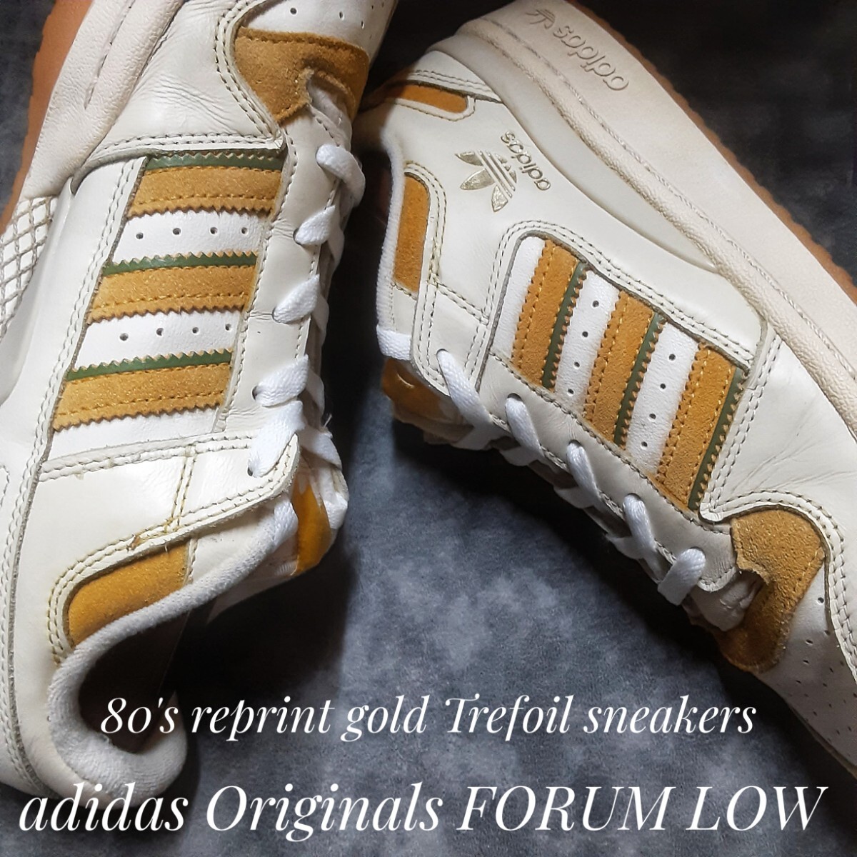 - 最値!80's復刻!ゴールドトレフォイル!生産終了!マスタードストライプ!アディダス フォーラム ロー レザー スニーカー!ホワイト!白辛色 26cm