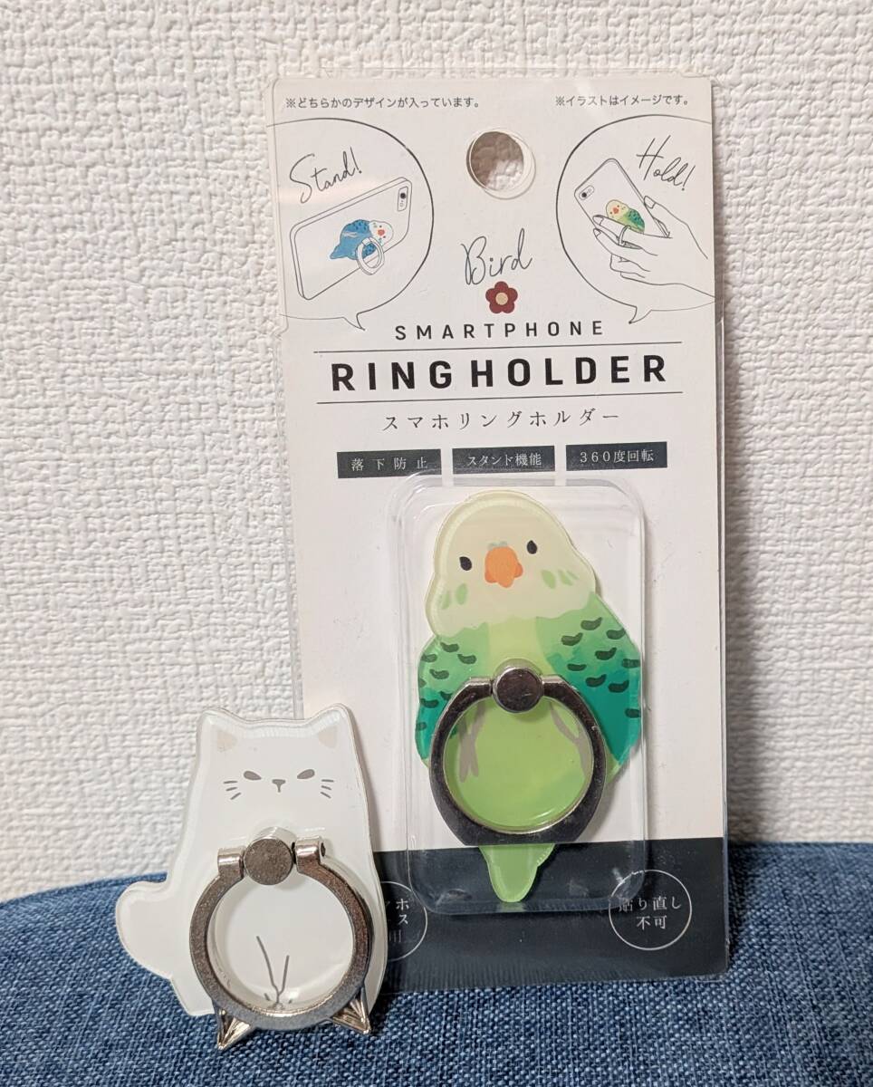> スマホリング 小鳥 白猫 スマホリングホルダー ネコはリングが猫耳型でかわいい! アニマル 新品未使用品! ⑧ おまけあり!