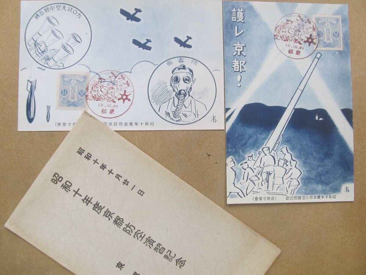 - 昭10【京都防空演習】記念繪葉書 2枚,袋