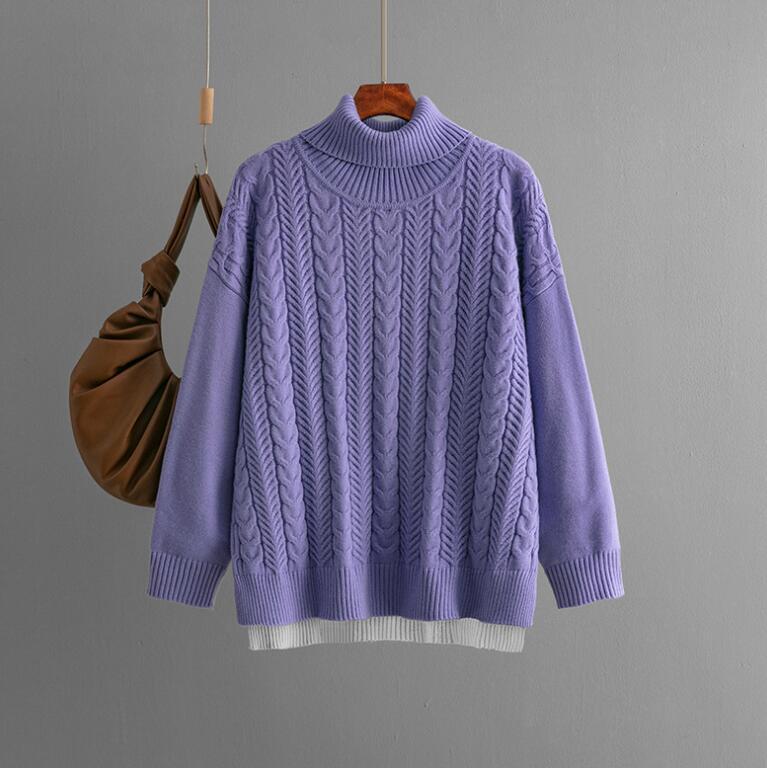 > 342 ニットセーターladiesレディース ◇ 魅惑Styleセクシー ◇sexy 上質 ケーブル編み バイカラー パープル