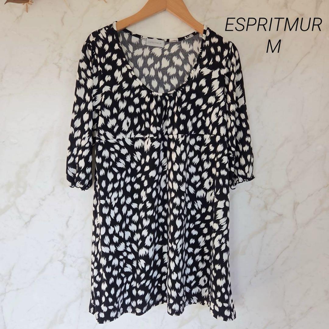 - 美品エスプリミュール ESPRITMUR チュニック M 総柄 黒×白