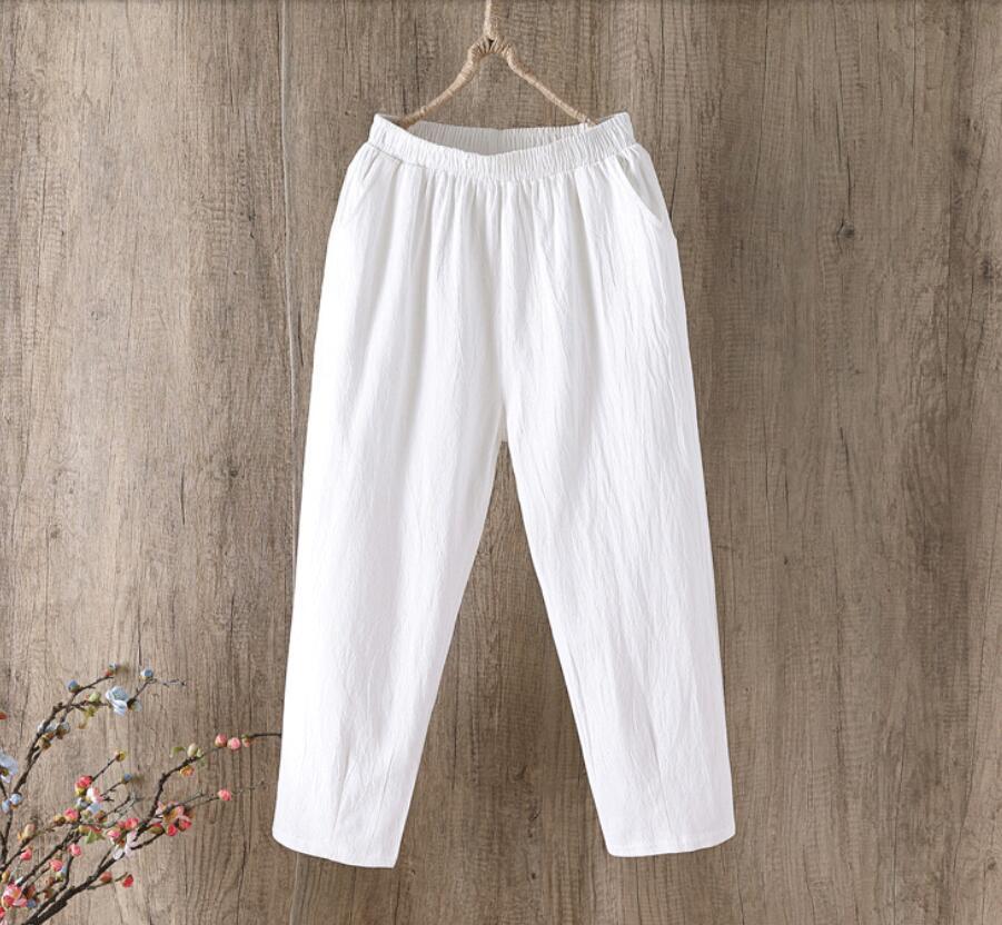 - 秋新作 森ガール カジュアル パンツ 可愛い 薄手 無地 綿麻リネン パンツ ウエストゴム 合わせやすい 美脚 レディース パンツ 白