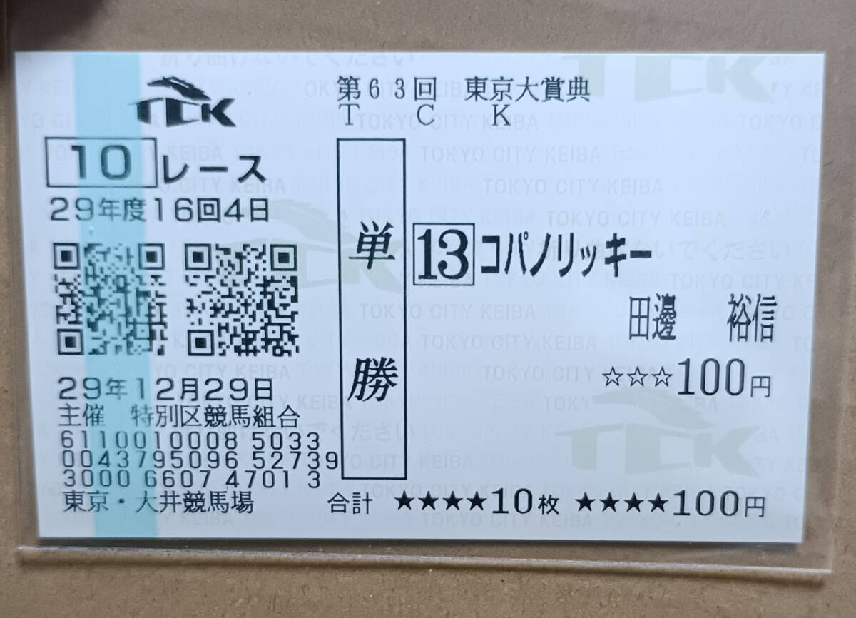 - 現地的中コパノリッキー東京大賞典:単勝馬券