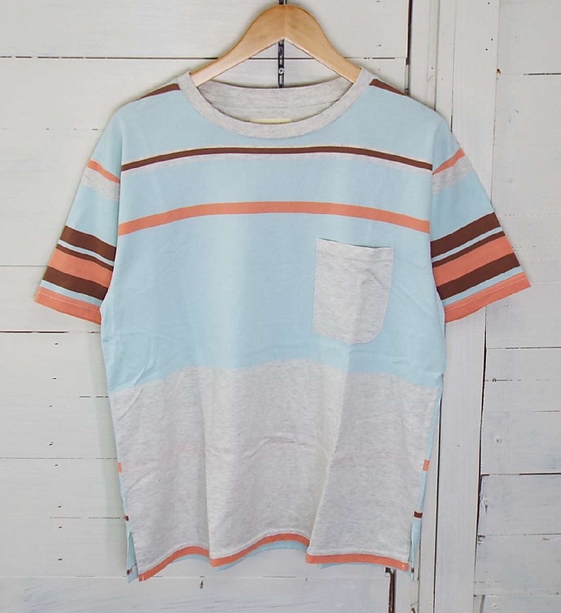 > T3257〇VOO(ヴォー)半袖 Tシャツ クルーネック/ボーダー/ブルー系 サイズ1 SAMPLE/サンプル品/品質タグ無し
