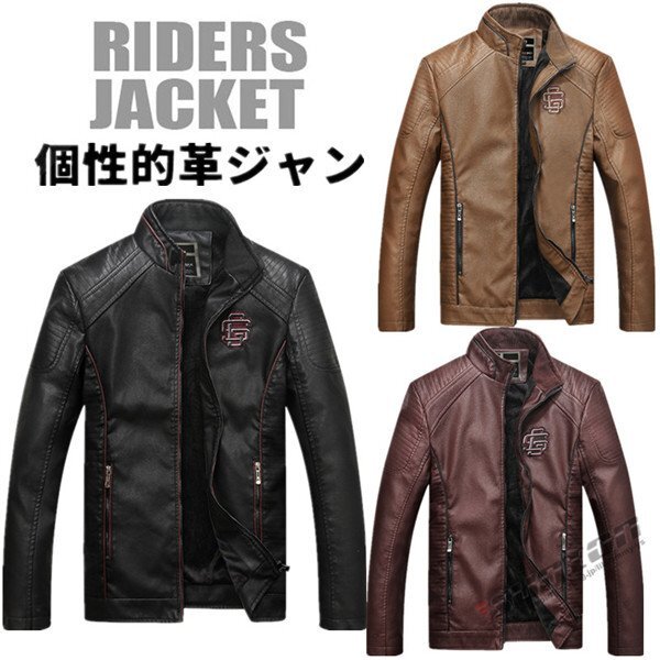 - 革ジャン レザージャケット メンズ 裏起毛 フライトジャケット バイク PUライダースジャケット カジュアル レザーコート 大き