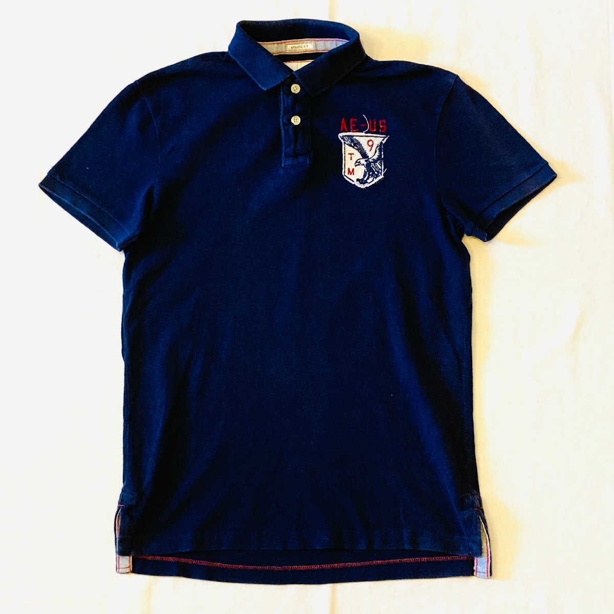 - AMERICAN EAGLE OUTFITTERS アメリカンイーグル ロゴ デザイン ポロシャツ ネイビー/紺 S/P