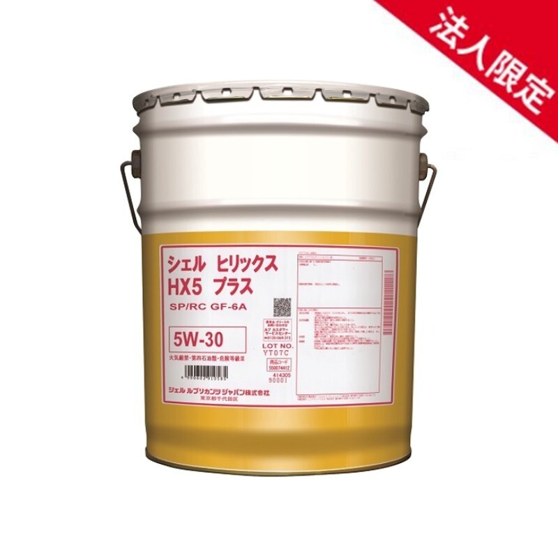 - 【法人限定】【20Lペール缶】シェルヒリックス HX5 プラス 5W-30 SP/RC GF-6A 部分合成油 Shell Helix PLUS 車用エンジンオイル