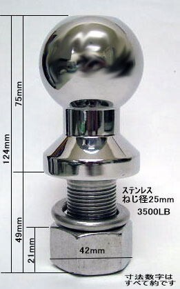 - ステンレスヒッチボール 2インチ ネジ25mm