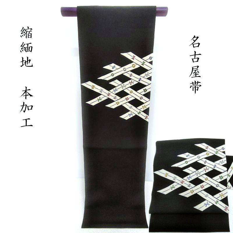 - Club藤★名古屋帯 型絵染め 縮緬地 網代紋 カジュアル 九寸名古屋帯 御仕立上り(3452)