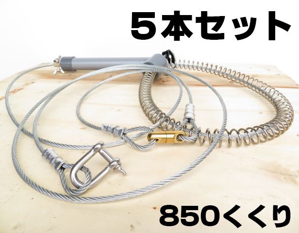 - 5個 850mm 強力 くくりワイヤー くくり罠 850mm ワイヤ 押しバネ 85cm 踏み板 くくりわな ステンレス パイプ 5本 くくり金具 足わな