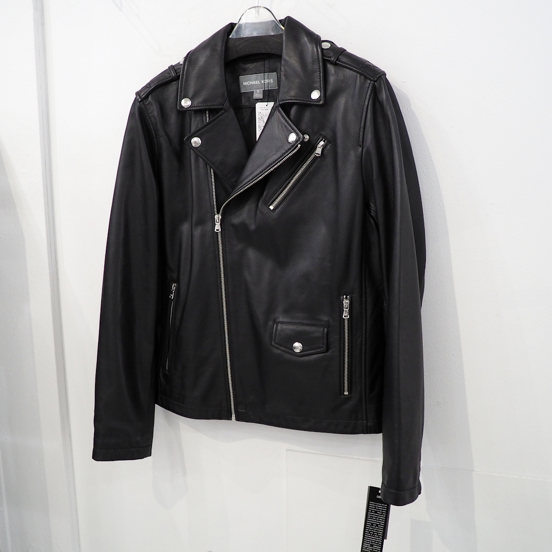 > 新品 定価14万 マイケルコース ラム レザー ダブル ライダース 黒 ブラック メンズ S M MICHAEL KORS 本革 ジャケット シンプル 羊革 軽量