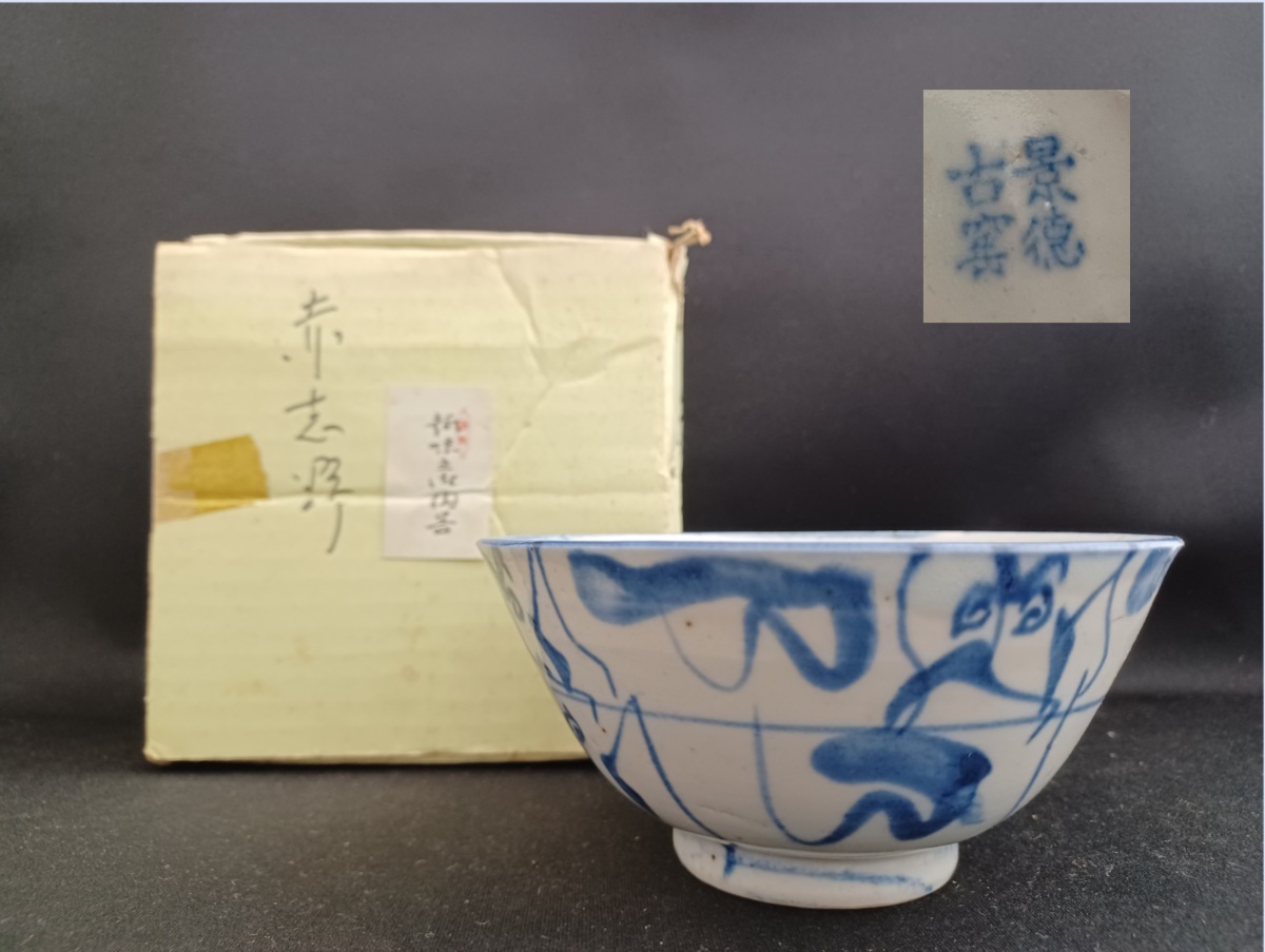 - 中国陶磁器 景徳古窯 染付 古物 中国美術 青花 草花紋 茶碗 茶道具 煎茶