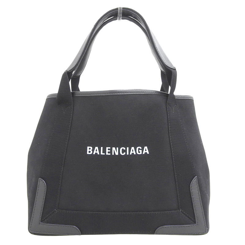> バレンシアガ BALENCIAGA ネイビーカバスS ハンドバッグ キャンバス/レザー ブラック 339933 中古 新入荷 OB2763