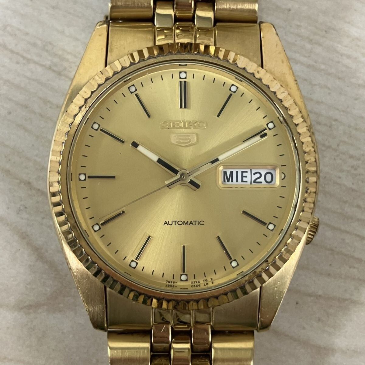 - D148-UT1-237 ◎ SEIKO 5 セイコー5 7S26-0500 自動巻き デイデイト 裏スケルトン ゴールド メンズ 腕時計 ウォッチ 稼働品 TC