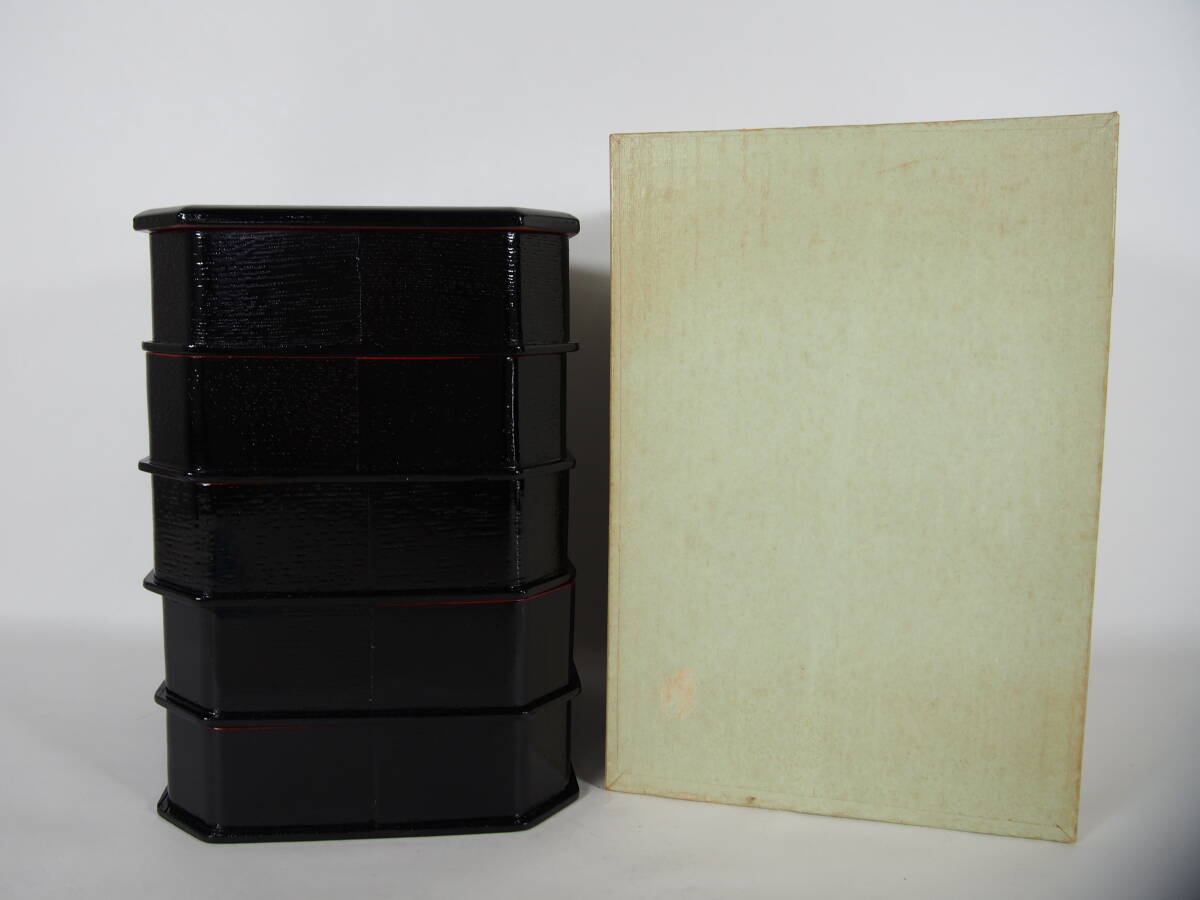 - 木製 柿合わせ 鱗透かし 縁高 懐石 茶道具 25 909ー35