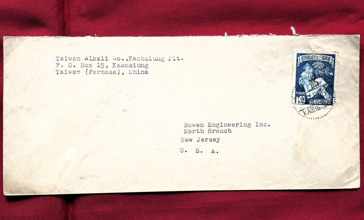- 【台湾!!】(51) 台湾省三七五減租記念$1.4貼り米宛封書 丸二印・高雄/52.1.29 → 基隆中継印