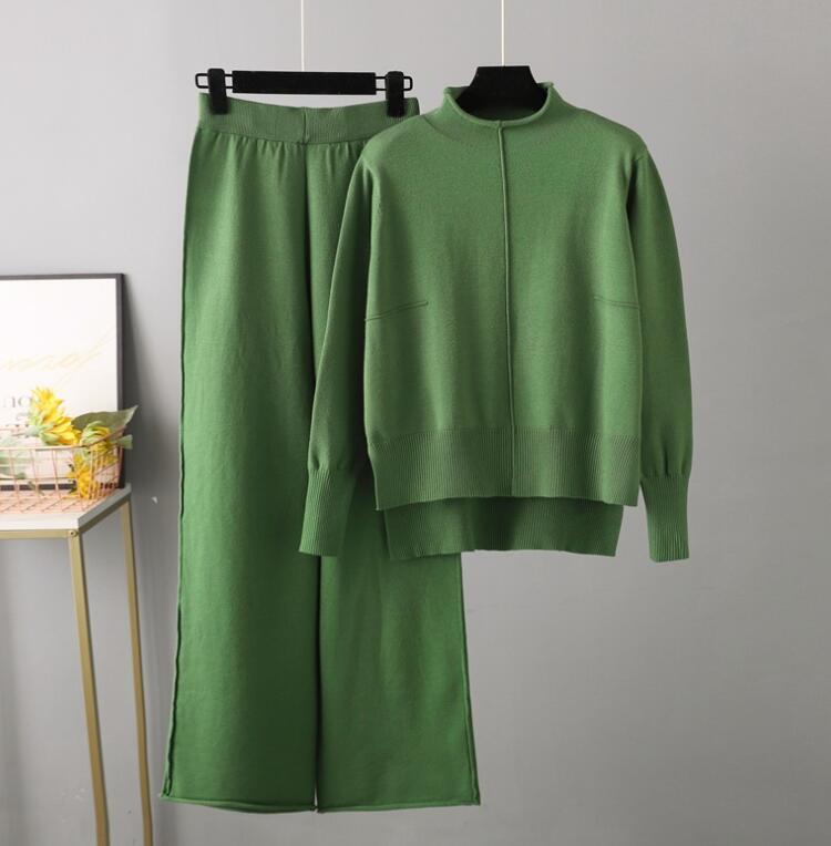 - 344 パンツスーツladiesレディース ◇ 魅惑Styleセクシー ◇ニット素材 上質 秋冬 グリーン
